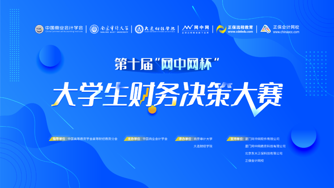 为深入贯彻落实新时代全国高等学校本科教育工作会议精神,加快振兴本科教育,深化高等院校的教育教学改革,构建高水平人才培养体系,培养学生终身学习发展、创新性思维、适应时代要求的关键能力,中国商业会计学会决定举办“第十届‘网中网杯’大学生财务决策大赛”。