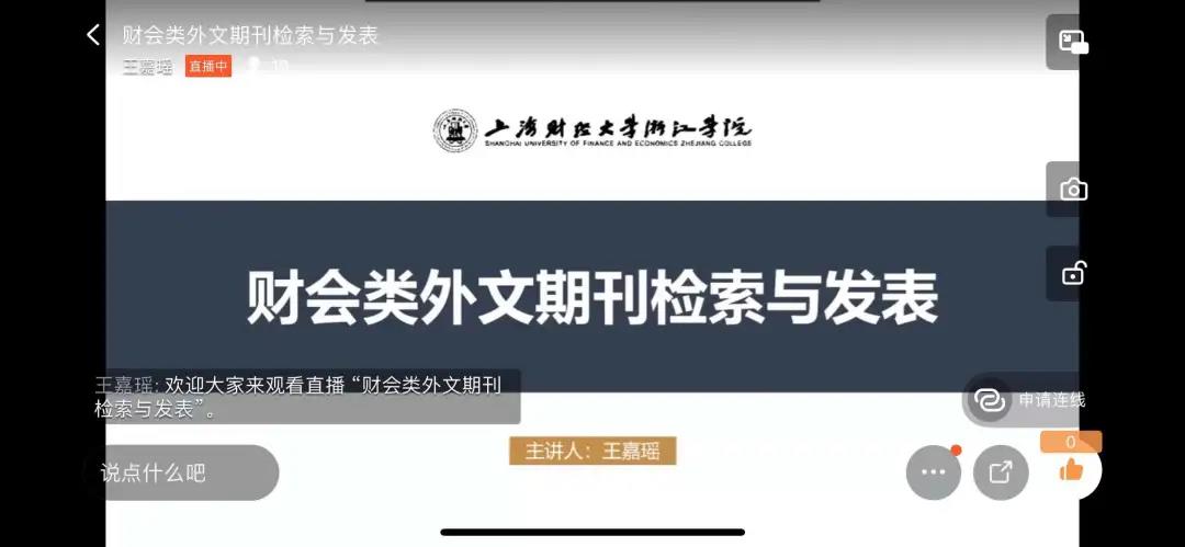 为提升会计系教师综合素质、科研能力,会计系在职博士王嘉瑶老师应邀作题为“财会类外文期刊检索与发表”的讲座。讲座于1月12日下午在线上举行,由会计系教师王金平主持,会计系全体教工聆听此次讲座。