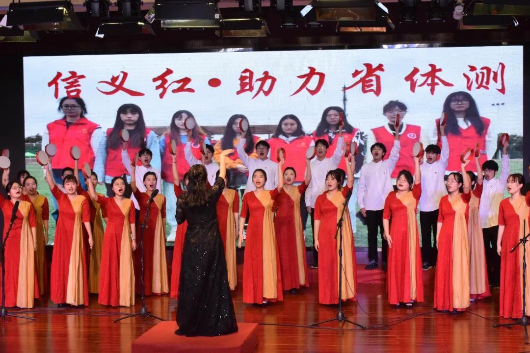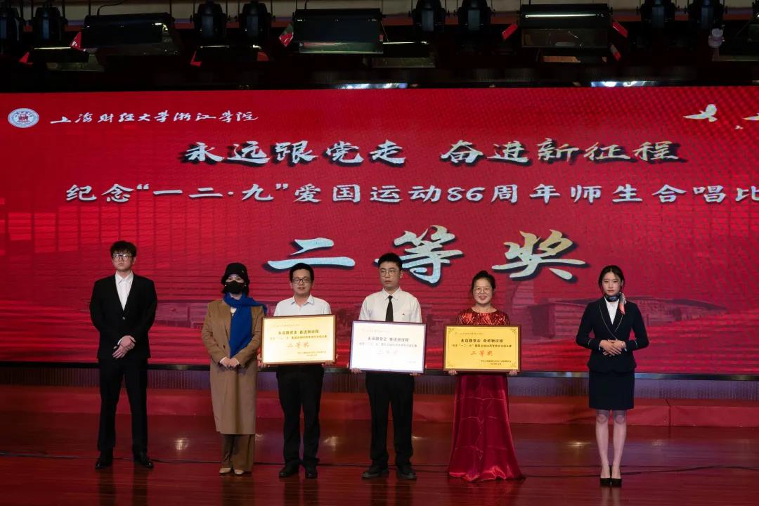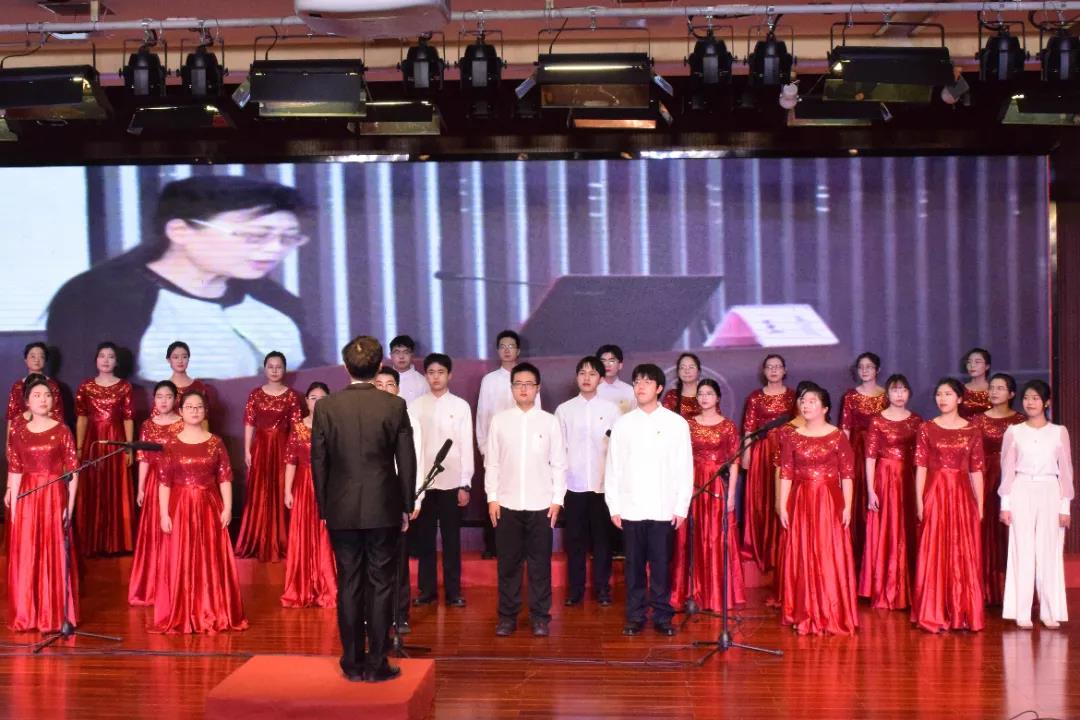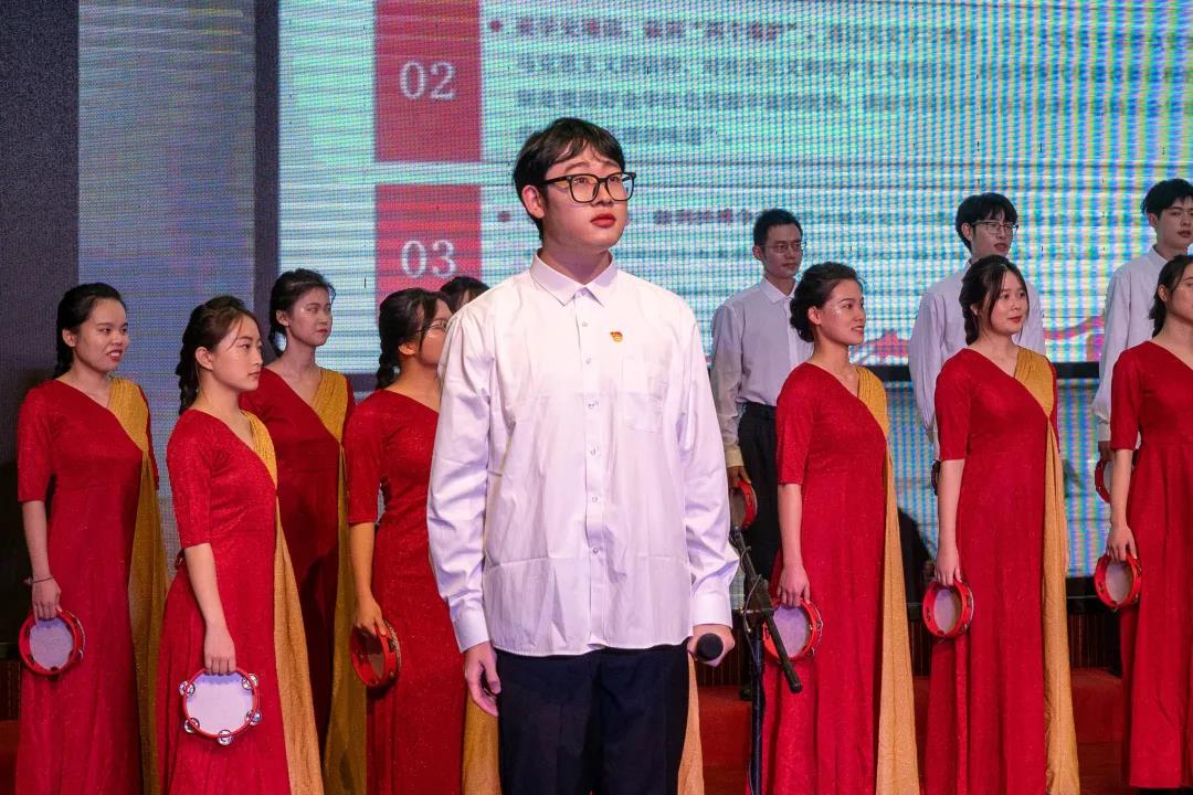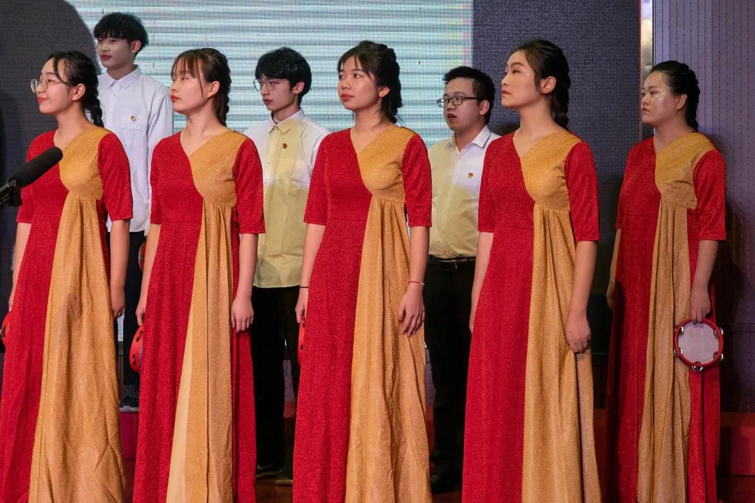 会计系党支代表第二队压轴出场,他们演唱的曲目分别是:《党旗飘扬的方向》,《打起手鼓唱起歌》。