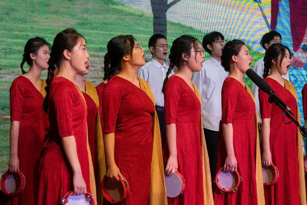 会计系党支代表第二队压轴出场,他们演唱的曲目分别是:《党旗飘扬的方向》,《打起手鼓唱起歌》。