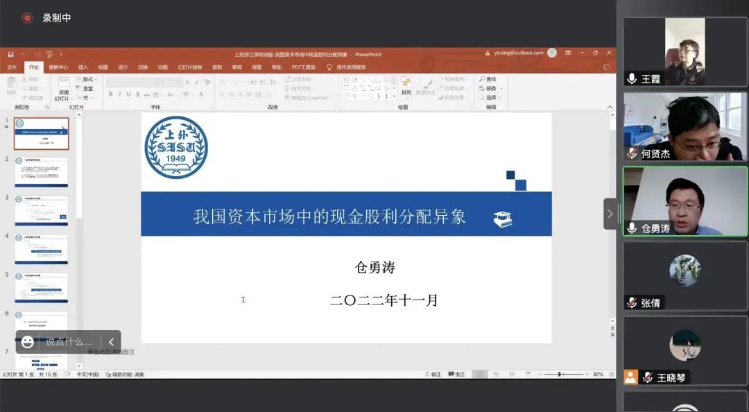 11月26日上午,为深入学习贯彻党的二十大精神,高质量提升专业建设水平,学院会计与财务研究中心成功举办“会计学科发展与会计研究学术研讨会——会计与经济高质量发展”。本次研讨会由上海财经大学会计与财务研究院指导,会计系会计与财务研究中心、《会计与经济研究》以及《财经研究》期刊社主办,邀请来自上海外国语大学、中南财经政法大学、武汉大学、南京大学多位专家学者开展主题研讨交流,共百余名师生参与了本次线上会议。、