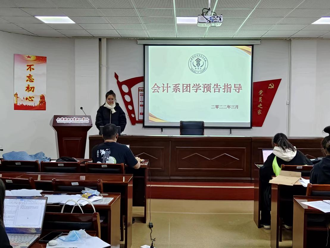 2022年3月27日,会计系团学活动预告指导会议与29-414展开。