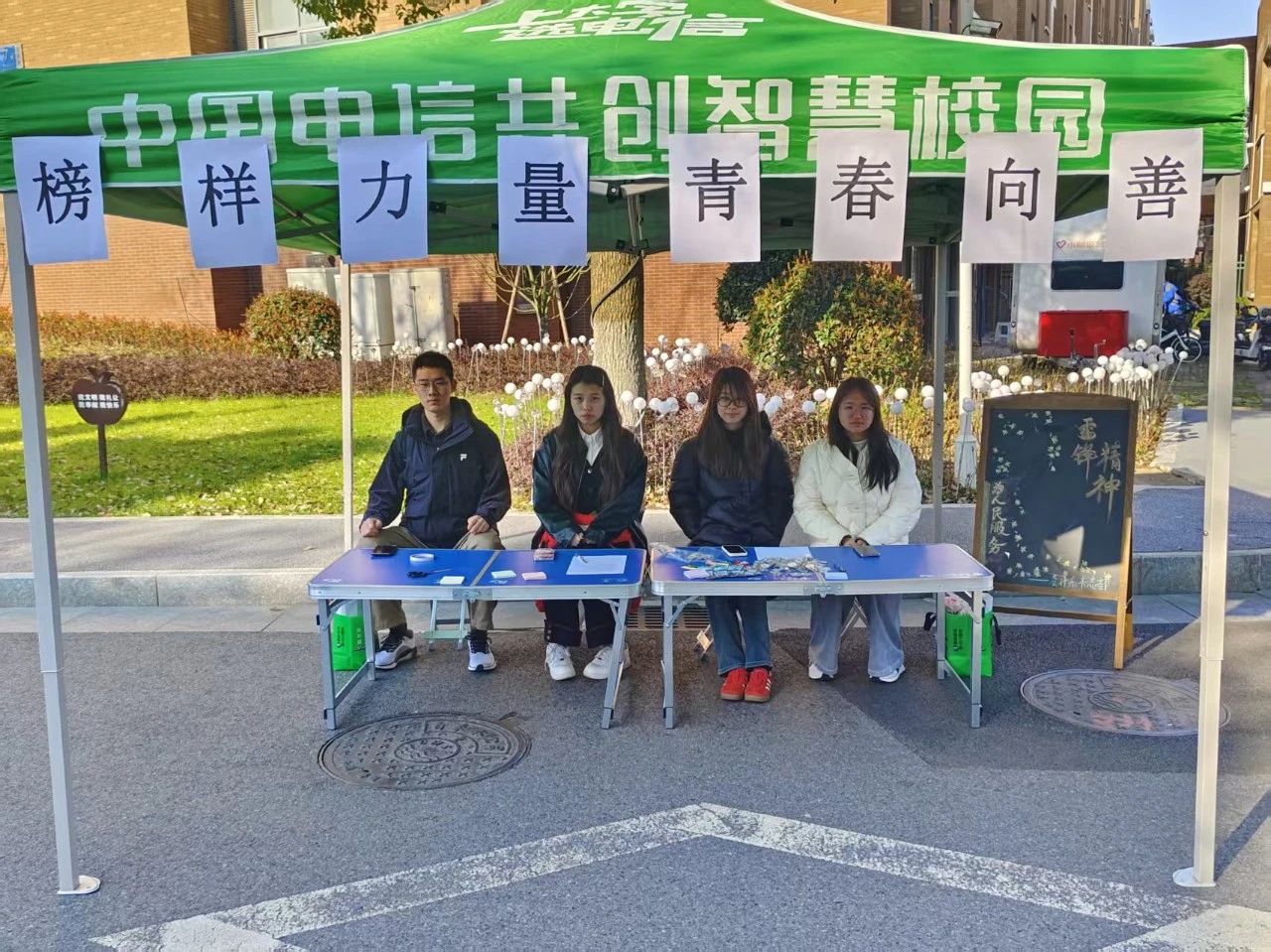 318日上午800,会计系筑梦青年发展中心青年志愿者联合部于主干道开展“榜样力量,青春向善”主题活动。