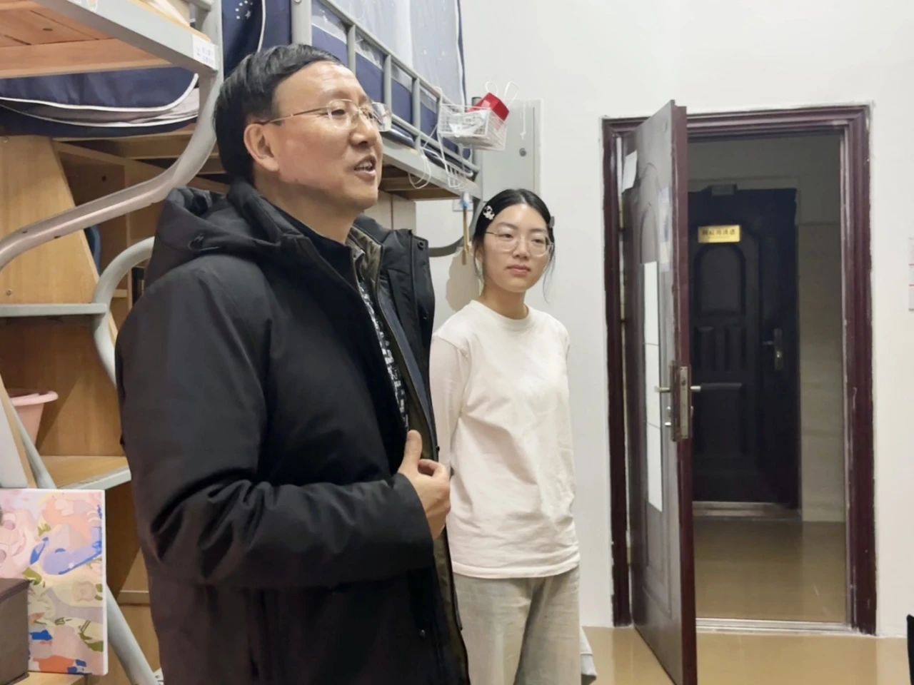 在走访过程中,邱风院长与同学们亲切交流,不仅了解了学生们的生活环境后,还详细询问了学生的期末备考情况、学业和心理压力、寒假假期安排等情况,提醒同学们尽快进入复习节奏,以诚信的考风和自信的心态迎接期末考试的到来。