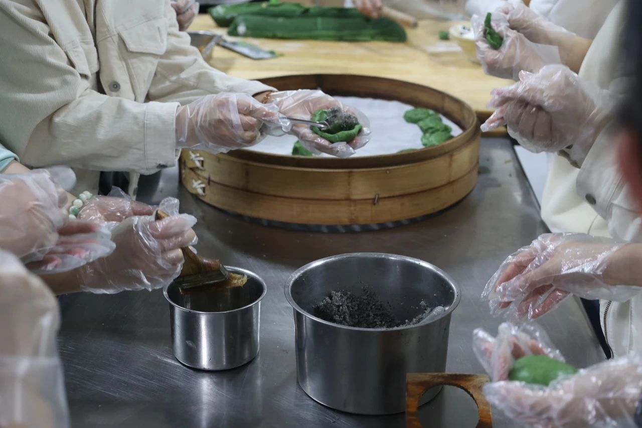 新鲜出锅的清明粿热气腾腾、香气四溢。轻咬一口,一股清甜的艾草气扑面而来,满嘴溢满了春天的味道,不由让人心中涌起一种满足的幸福感。不由叹言:唯是食青粿,一品春味到。在最后,满天星志愿队的同学们还将这份“粿韵”传递给广大谆谆教诲学生的老师们。