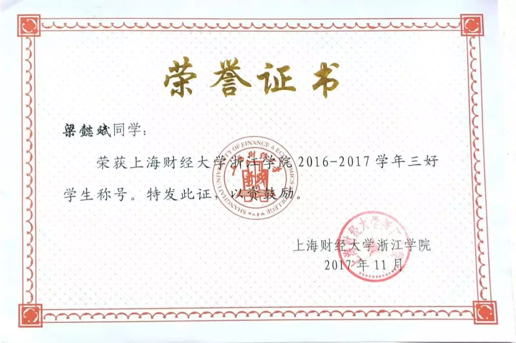 多次获得浙江省政府奖学金、三好学生等荣誉