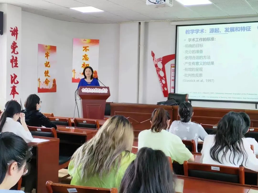 岑老师从自身的学习经历与教学工作实践出发,从理论和实践两方面回答了“‘教学学术’是什么”以及“‘教学学术’怎么做”两个问题。从“教学学术”的源起与发展开始,介绍概念、特征、一般步骤与实践应用等方面。针对目前高校教师既肩负着教书育人的教育责任,又承担了科学研究的学术要求这一现状,岑老师认为,可从教育学中“教学学术”这一领域出发,即将教学活动本身作为理论研究的对象,首先发现并提出问题,其次对所提出的问题进行评估与审查并将其进一步理论化,并缩小至学术研究的可行范畴内,然后确定研究思路与手段,最终形成研究成果。此外,岑老师还介绍了现行的主流教学学术类论文的基本架构,鼓励与会教师能更多地参与相关的学术研究。