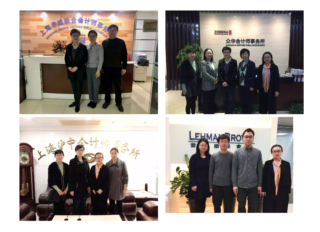 上海地区由会计系负责人王霞带队,教师代表王金平、郭萍一同走访众华会计师事务所、申威联合会计师事务所、沪中会计师事务所、雷博国际会计。
