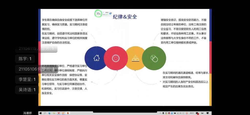 王霞老师主要从以下六个方面展开。第一点,调研和实习的目的。它是实践教学的重要组成部分,可以培养学生学以致用、求真务实的优良风范。第二点,调研和实习的具体内容。可以从数字经济、自贸区建设、会计准则、乡村振兴等方面进行。第三点,调研和实习方法。首先需要带着问题去调研和实习。其次,可以采取文献分析、问卷调查等方法。第四点,往年经常出现的问题。主要有没有具体的调研对象、提交的报告没有切实反映自己的实习体会等问题。最后两点,强调了安全的重要性和时间安排。