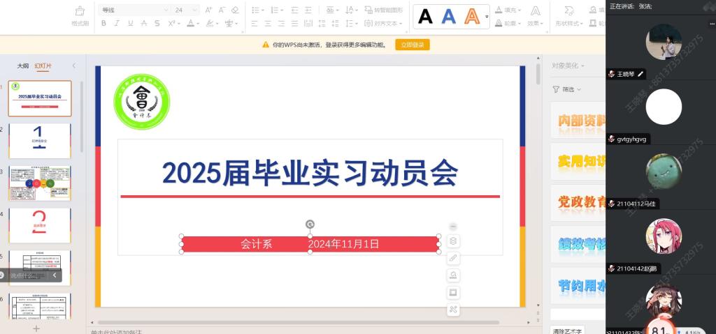 10月30日,会计系2025届毕业实习动员大会在线上举行。