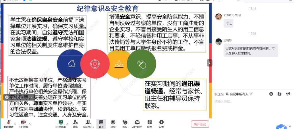 最后,教科办主任王晓琴就毕业实习相关材料的提交要求以及其他毕业相关工作进行了详细说明,方便同学们了解毕业前最后一个阶段的重要学习任务。