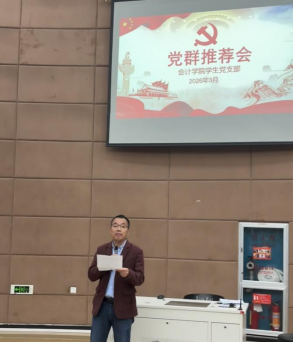 为严格规范发展党员流程,严把入口关,发扬民主、听取党员群众意见,3月30日晚18时,会计学院在6-311教室召开2026年上半年入党积极分子党群推荐会。学院党委书记王明照、各学生支部书记、全体学生党员及群众代表出席会议,厉万荣老师主持会议。