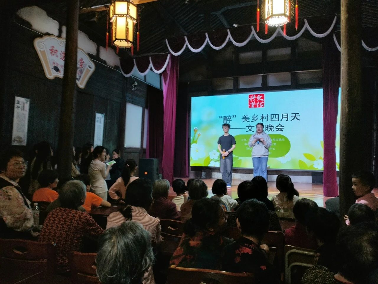 活动开始前,志愿者们提早到达桥头陆村活动地点,为此次“最美乡村四月天”主题诗朗诵志愿活动做准备。准备过程中,老人们陆续到达场地,志愿者们不断练习,只为给老人们展现最好的舞台。