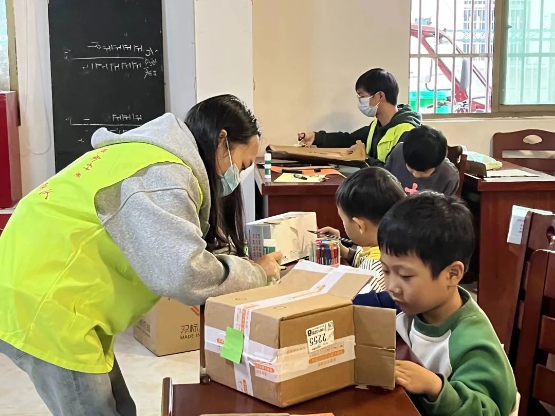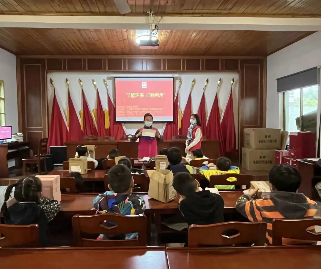 为增强小朋友们的绿色文明意识,积极践行习近平总书记“绿水青山就是金山银山”的发展理念。满天星志愿队以“旧物利用”为主题,在桥头陆村开展了废旧纸箱改造活动。
