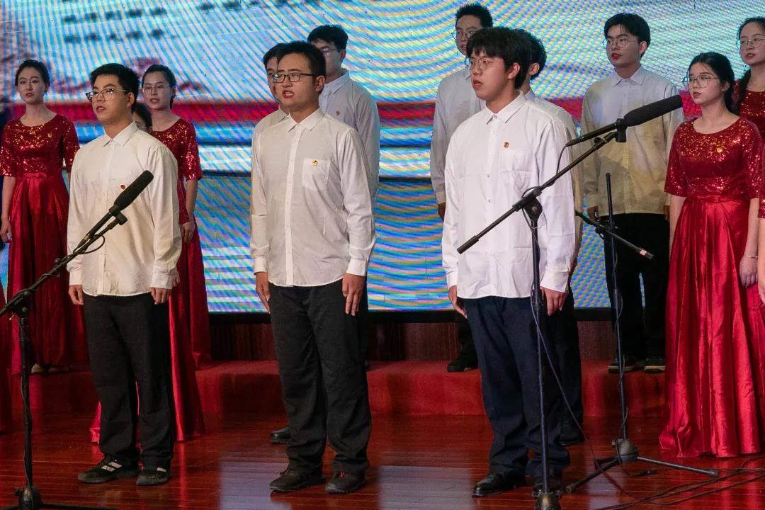 会计系党支代表第二队压轴出场,他们演唱的曲目分别是:《党旗飘扬的方向》,《打起手鼓唱起歌》。
