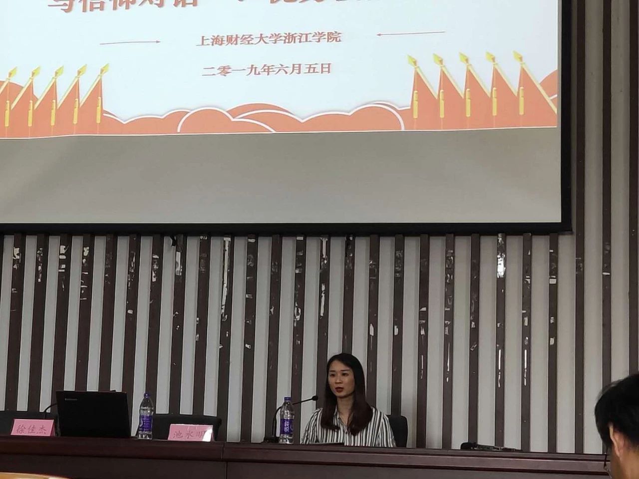 6月5日,会计系团总支学生会于28-120报告厅举行“与信仰对话:优秀校友谈创业”讲座活动。2008级毕业生尉建亢、2014级毕业生徐佳杰、郑晓霏三位优秀校友担任主讲,创业学院池水明老师主持讲座,会计系党总支副书记许海亚老师、辅导员贾丹老师出席了本次活动。