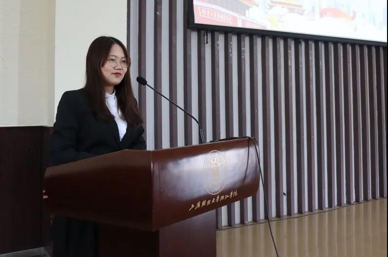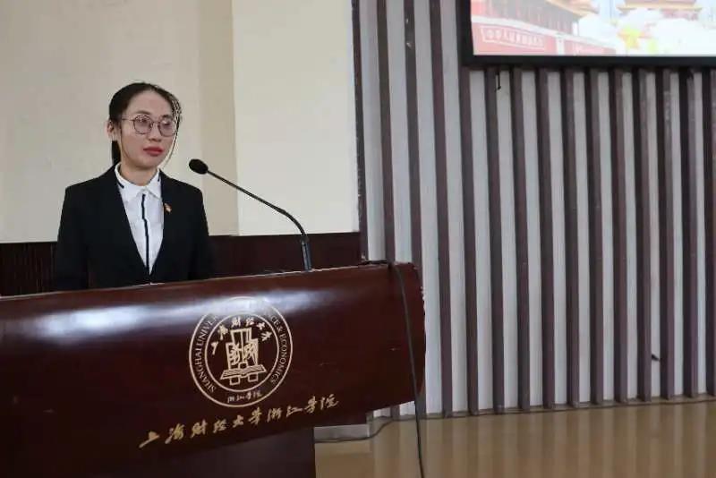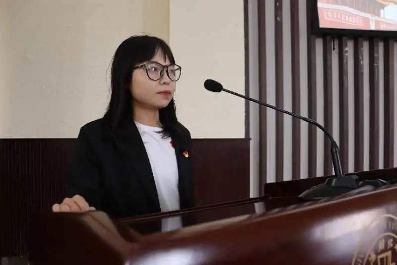 原会计系第一学生党支部负责人兼职能部门主任陈娇同志进行2019-2020学年学生党建工作总结汇报。