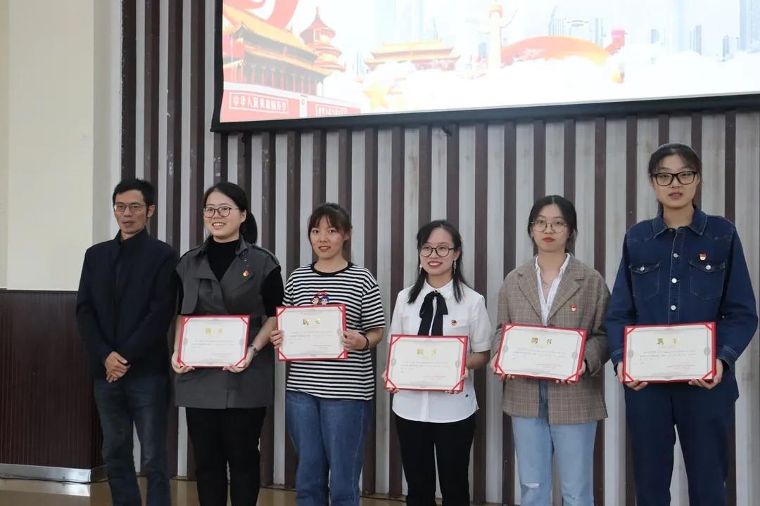 程佳元老师为陆江琴同学颁发“优秀部长”证书,为蒋艳同志、高佳丽同志、王婷嘉同学颁发“优秀干事”证书。