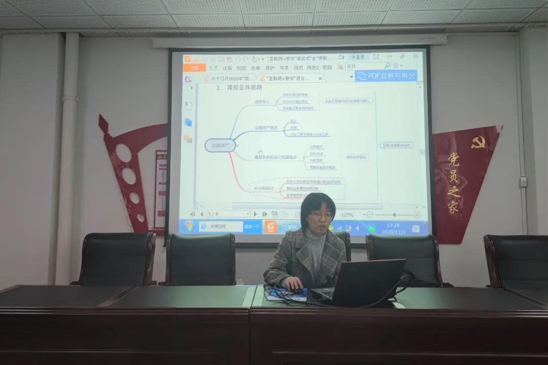 王嘉瑶老师展示了参赛获奖的优秀案例:“互联网+教学”混合式“金”课教学改革——以“财务会计专题”课程为例。王嘉瑶老师还分享了财经法规与会计职业道德的课程思政建设项目,从项目基本情况、研究成果、研究总结、成果材料等几个方面进行了详细地介绍。最后,王霞老师进行总结发言,鼓励大家要认真教学,相互学习、不断进步。