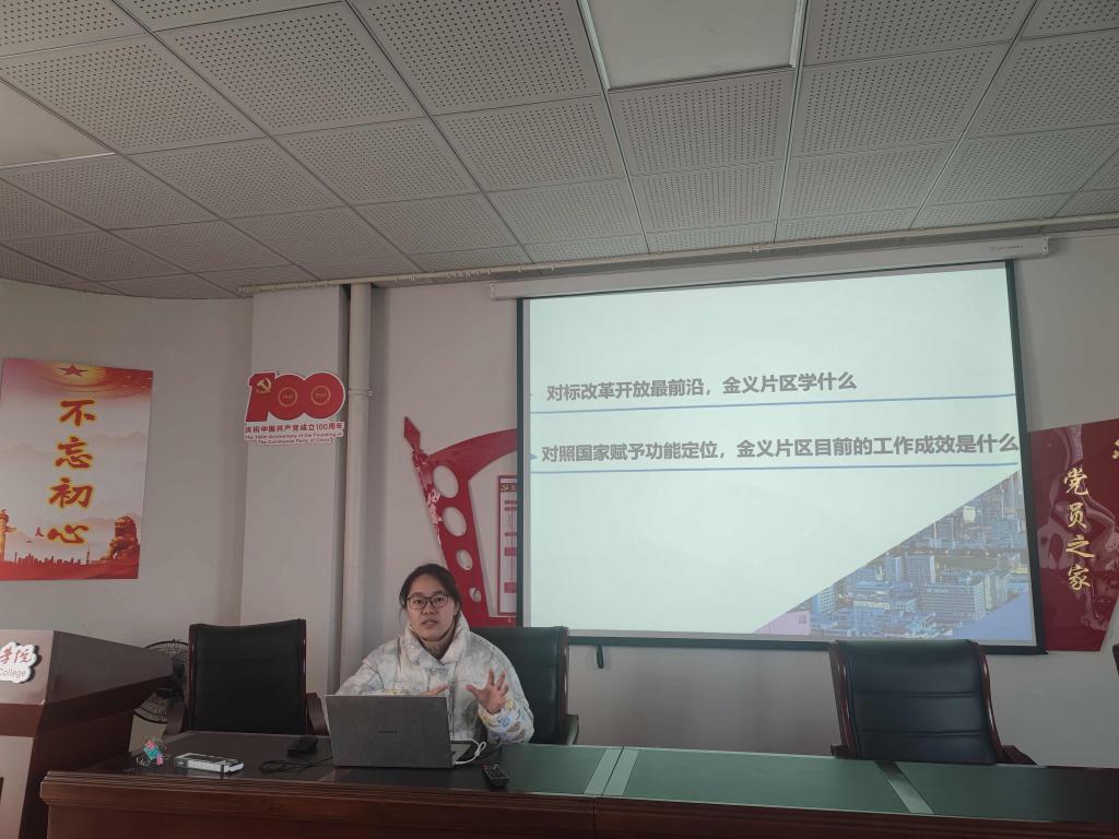 会上,吕颖菲老师就自贸区是做什么的、金义片区学什么以及工作这一年的感想几个方面展开阐述。