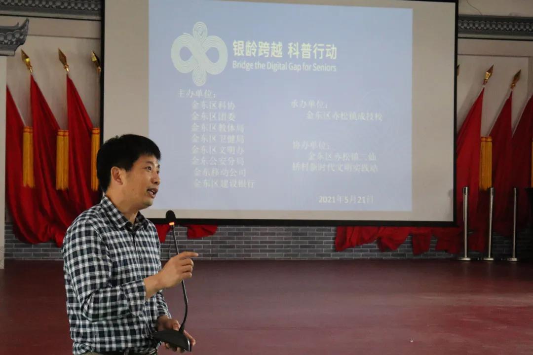 本次活动主要分为三部分,分别由金东区科协施长征主任阐述本次活动意义,赤松镇成技校负责人蒋美香老师负责指导参会老人们如何领取流量包,使用手机挂号等智能机使用方式。此外,公安分局指派赤松镇派出所辖区警务人员,村警汪立骏汪警官宣传防诈骗知识。