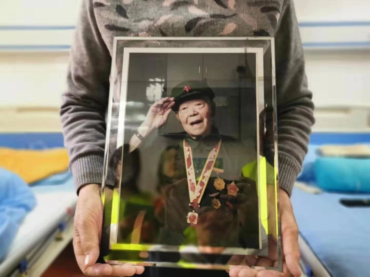 在与老人交流时,爷爷奶奶们向同学们讲述他们抗日抗美的故事,讲述了新中国成立的故事。其中一位爷爷,他拿起自己挂满勋章的照片,为同学们讲述每一块勋章的来历。