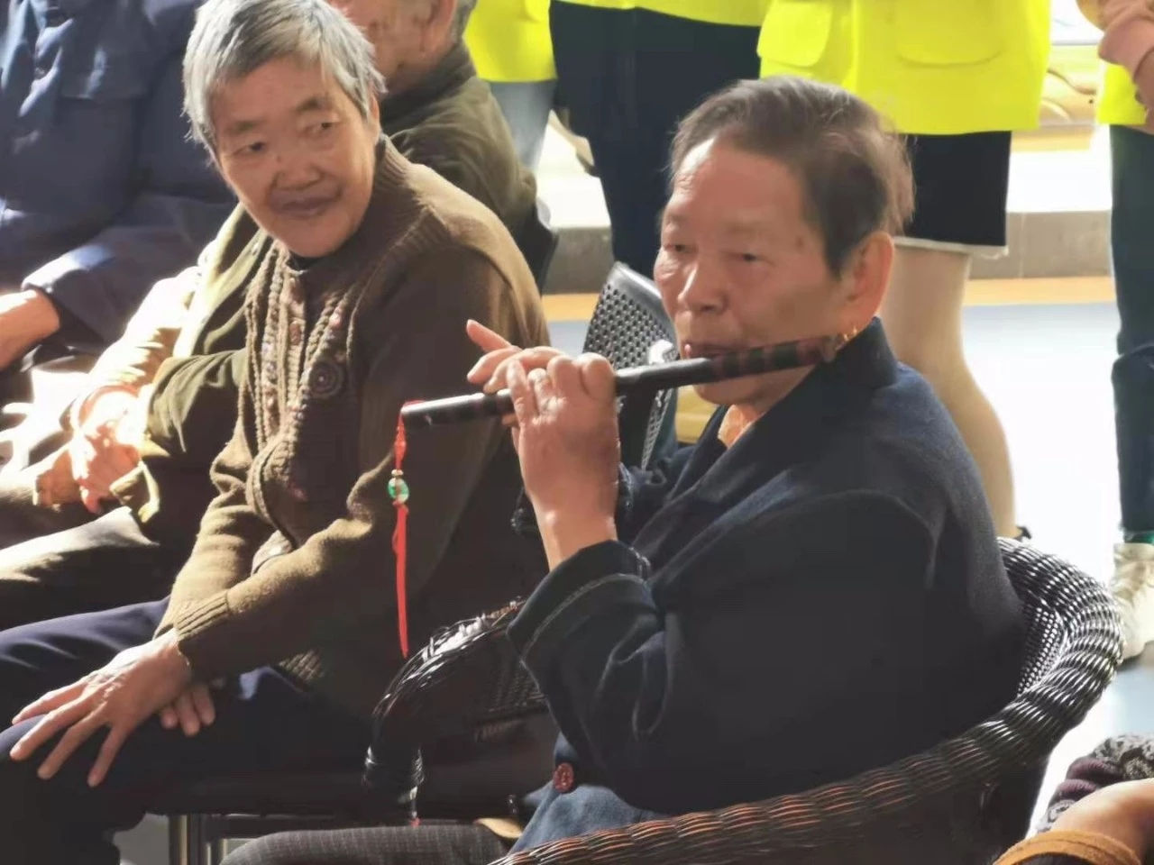 当同学们为老人表演节目时,有一位奶奶拿出了她的乐器为同学们伴奏,也有一些老人和同学们一起唱了起来,活动室内十分和谐温馨,让大家感受到了老人们的热情。