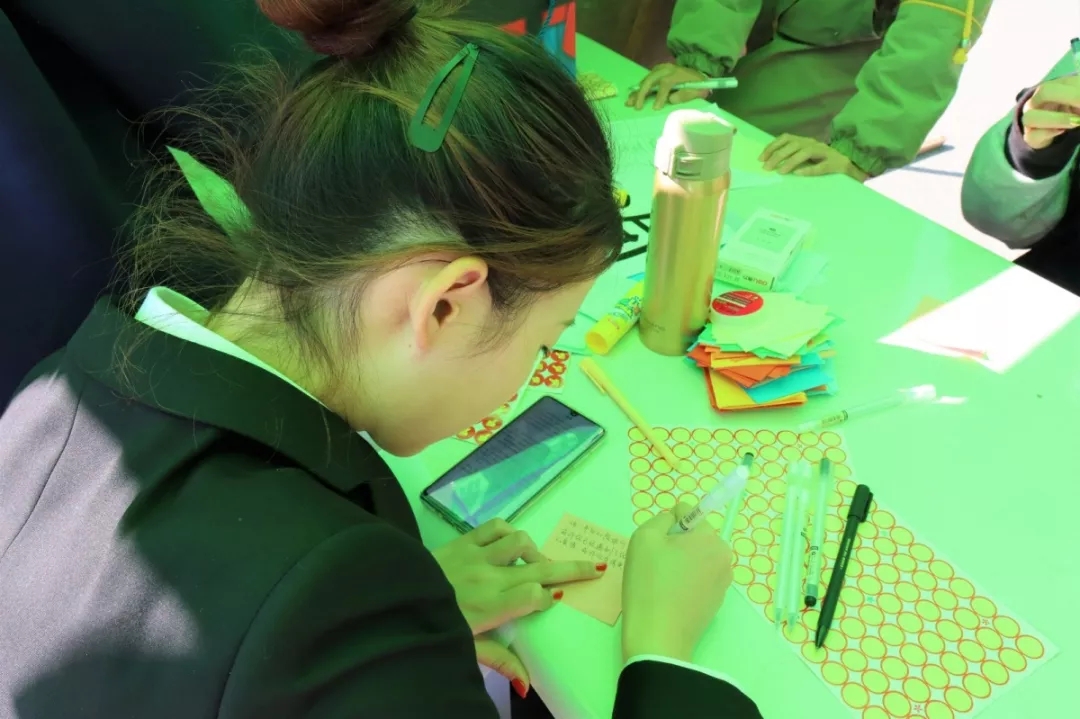 同学们站在时光的这头,眺望着时光的那头,一笔一划勾勒出那个神秘的未来。怀着最初的梦想,写下了自己的期许,并放入了时光胶囊中……