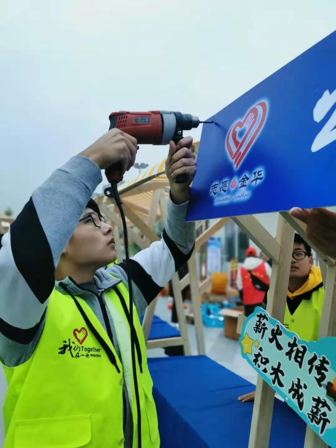 青年志愿者们到达现场后听从负责人的安排,认真布置现场,快速完成了工作。
