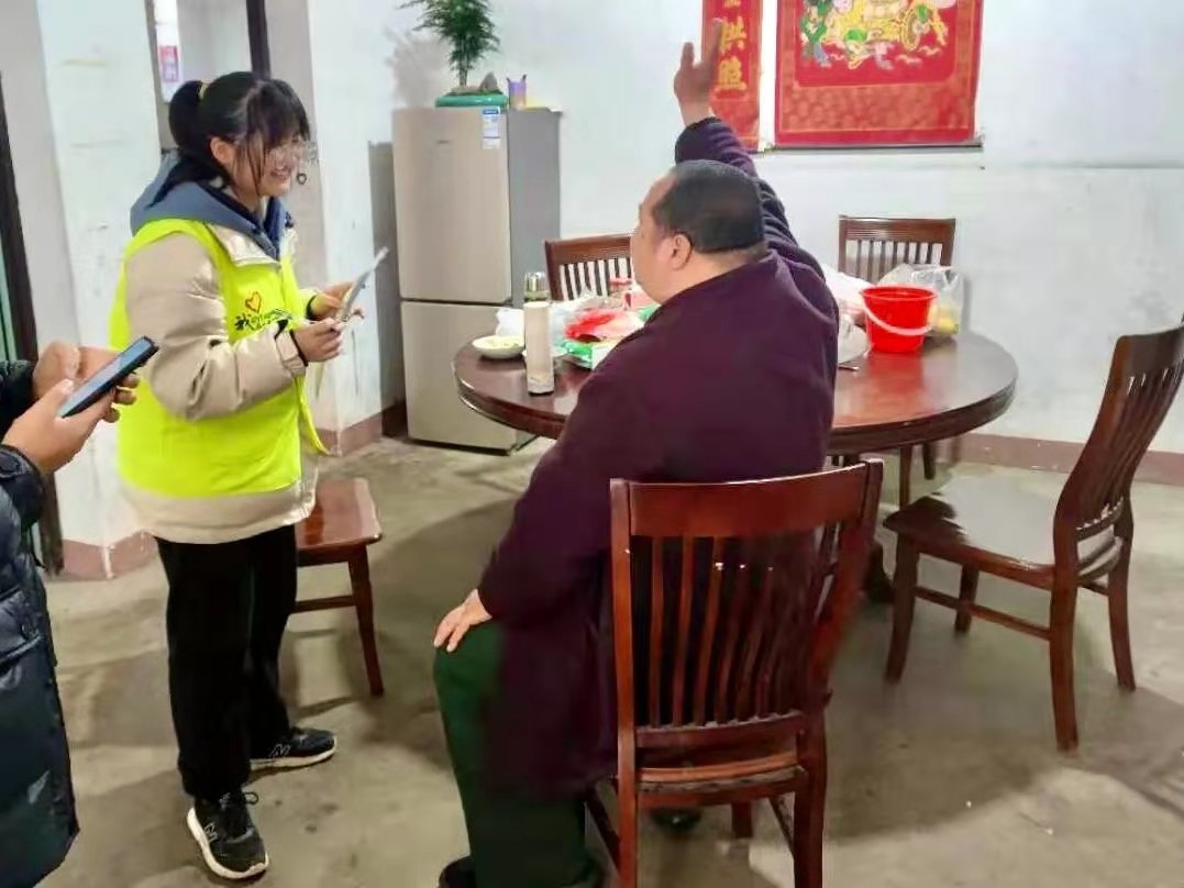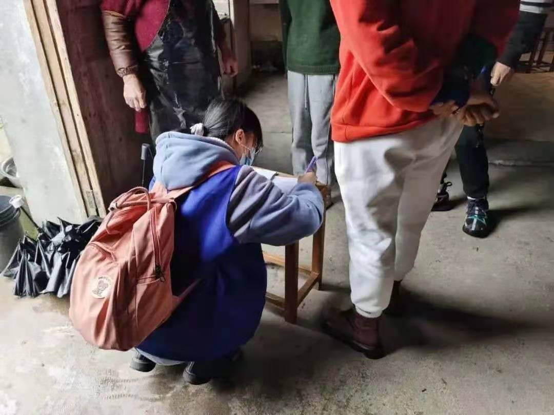 在 3月20号,满天星志愿队全体成员便全部行动起来。虽然下着小雨,但依旧阻挡不了我们的热情。本次走访,共走访6个乡镇,20个村子,26户家庭,人均步行达12公里。