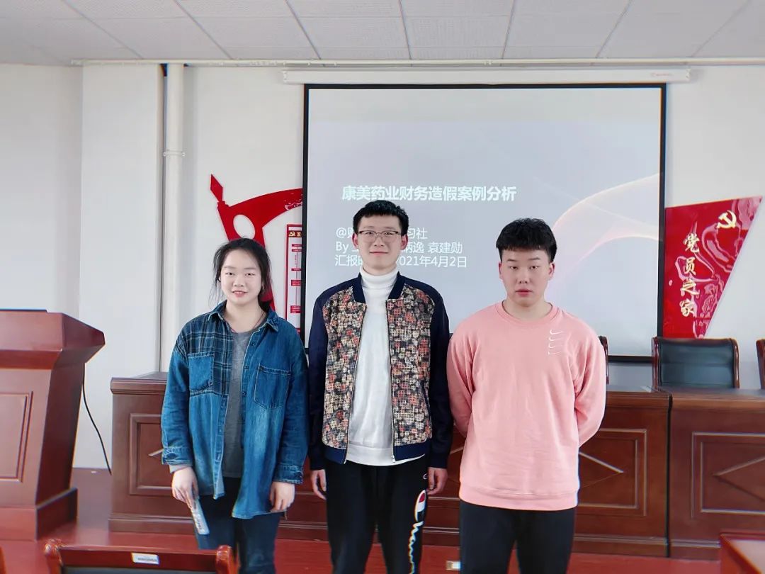 在本次活动中,来自20注会二班的王佳琪、李昞逸、袁建勋三位同学就康美药业财务造假事件为我们发表了演讲,分享了一些关于该事件的看法,为台下观看演讲的同学们补充了许多会计方面的知识,如财务造假的方式和对审计的处罚力度等等。