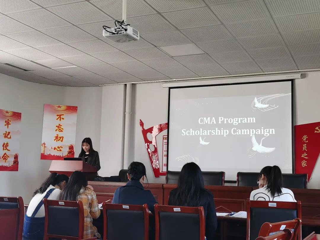 2021年度CMA奖学金评比活动于3月25日在28-414党员之家顺利举行。由财务管理研习社吴晶老师宣布评选活动正式开始。
